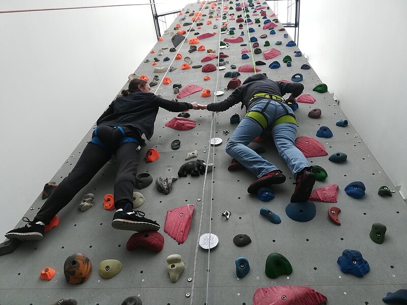 Nach einer kurzen theoretischen Einführung zu den Möglichkeiten beim Therapeutischen Klettern probieren die Teilnehmenden kleine praktische Übungen unter Anleitung an der Kletterwand aus. Dabei können MS-Erkrankte neue Wege beschreiten und Grenzen austesten – ganz nach ihren individuellen Möglichkeiten.